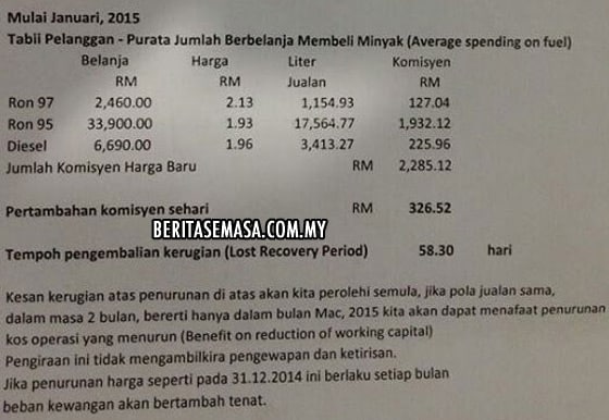 - harga petrol RON95 2015 : RM1.93 seliter