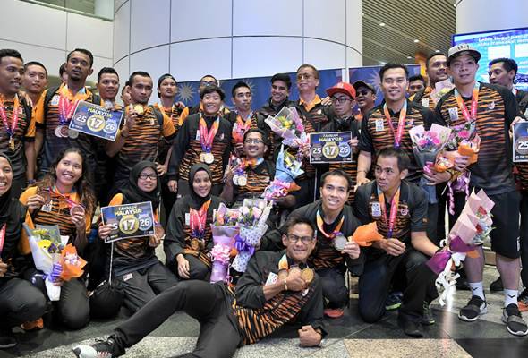 bersama Skuad Paralimpik Negara selepas tiba di Lapangan Terbang