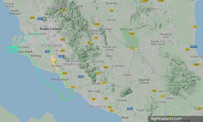 Berdasarkan semakan di web flightradar24.com pada pukul 8 malam tadi, pesawat MH360 yang dijangka tiba 12.20 tengah malam semalam di destinasinya, berlegar di ruang udara Selat Melaka sebelum kembali semula ke KLIA.