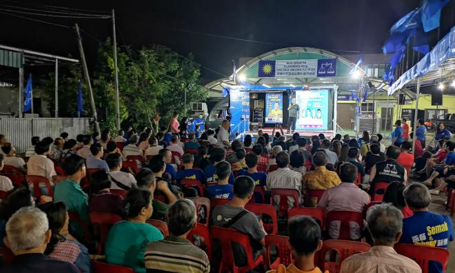 PRK TG PIAI | Kira-kira 300 orang hadir ke ceramah pertama anjuran MCA di bilik gerakan mereka di Pekan Nenas malam tadi.
