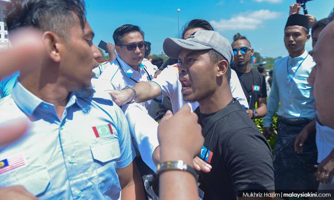 anggota PKR berbaju seragam parti berwarna biru muda dilihat berdarah