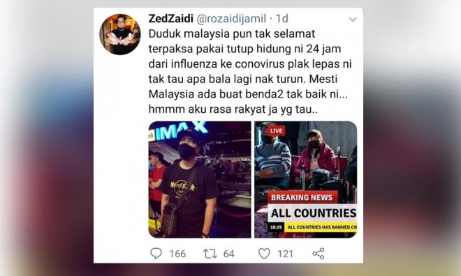 Presiden Persatuan Seniman Malaysia (Seniman) Zed Zaidi dikecam warga maya selepas mengongsikan berita palsu berkaitan koronavirus 2019 (2019-nCoV) di media sosial.