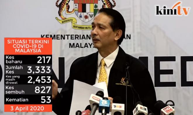 Jelas Noor Hisham, 58 daripada 217 kes baru yang dilaporkan hari ini mempunyai kaitan dengan kluster tabligh Sri Petaling.
