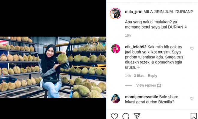 Penyanyi Mila Jirin mengaku tidak malu mengambil langkah alternatif seperti menjual buah durian demi menampung pendapatan syarikatnya selain melunaskan gaji pekerja.
