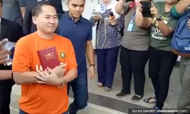 Peter yang berpakaian sut hitam tiba jam 8.15 pagi dengan ditemani peguamnya, Martin Tommy.