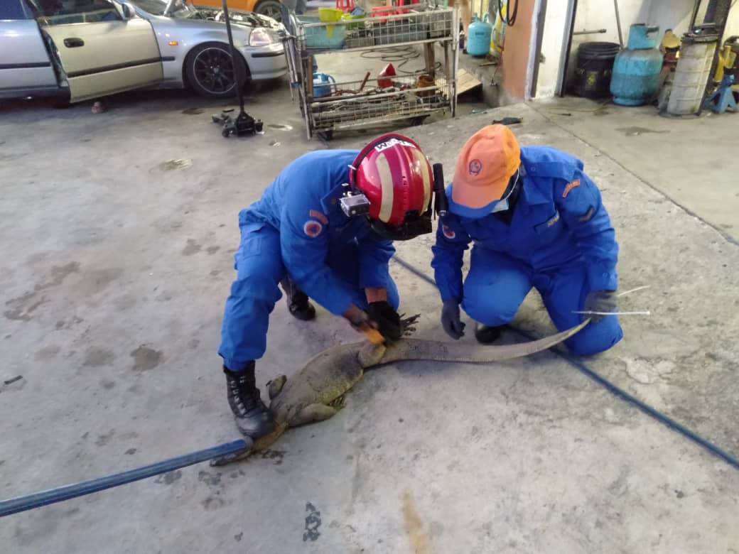 Dalam kejadian kira-kira pukul 7.20 malam itu, biawak betina seberat 30 kilogram (kg) itu bertindak agresif melibas anggota APM yang cuba menangkapnya.