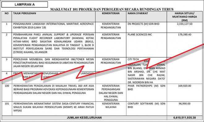Terdahulu, Tengku Zafrul mengeluarkan mengeluarkan laporan 101 projek bernilai RM6.61 bilion yang didakwa diberikan melalui rundingan terus ketika pentadbiran PH.