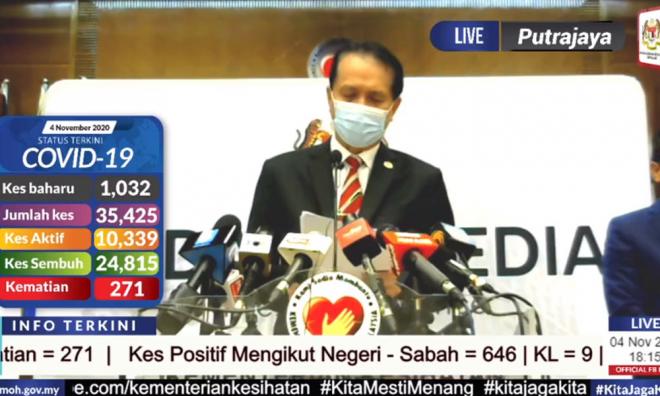 "Daripada 1,029 kes penularan di dalam negara, satu kes merupakan pengunjung yang pulang dari Sabah.