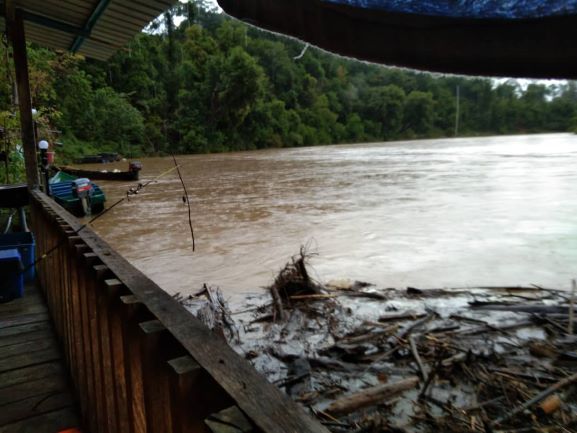 “Hujan lebat selama sejak empat hari lalu sehingga ini air sungai masih melimpah dan arus deras menyebabkan sebahagian ternakan ikan patin, ikan tilapia dan ikan baung dihanyutkan air.