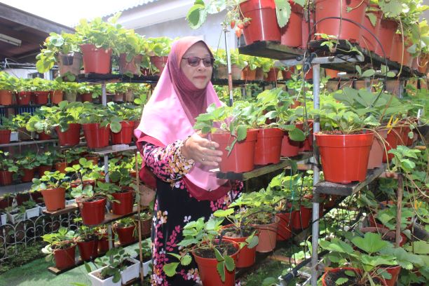 Tambah Norizan, dia dan suami, Amran Abdullah, 58, kini memiliki sebanyak 567 pokok strawberi yang sedia dibeli di halaman rumah mereka.