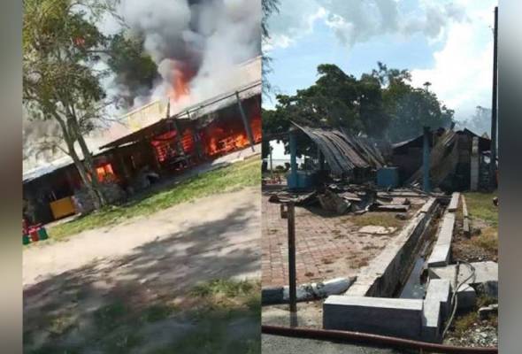 Deretan 15 buah kedai di Pantai Morib, Selangor terbakar dalam kejadian pada Isnin. -Foto Sinar Harian