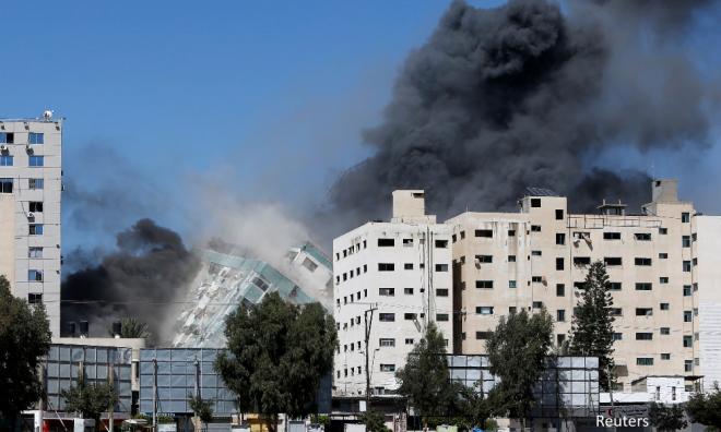 GLOBAL | Blok menara di Gaza setinggi 12 tingkat yang menempatkan pejabat Associated Press yang berpangkalan di AS dan penyiaran berpangkalan di Qatar, Al Jazeera runtuh pada hari Sabtu.