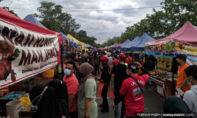 Berdasarkan tinjauan Malaysiakini di Bazar Ramadan Tasik Permaisuri Kuala Lumpur, pengunjung tetap beratur panjang di pintu masuk, menunggu giliran untuk mengimbas kod QR MySejahtera dan memeriksa suhu sebelum dibenarkan masuk bagi membeli juadah.