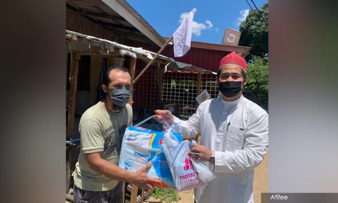 “Ada seorang individu bernama Afifee datang memberi susu bayi dan kain lampin pakai buang selepas jiran saya memaklumkan tentang bendera putih yang dikibar oleh saya kepadanya.