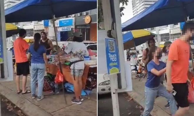Penjual nasi lemak dan anak perempuannya itu juga masuk campur cuba menenangkan keadaan.