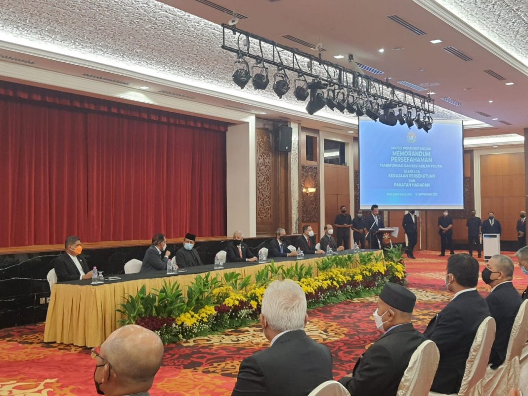 Memorandum Persefahaman Transformasi dan Kestabilan Politik ditandatangani oleh Perdana Menteri Ismail Sabri Yaakob dan pemimpin utama Pakatan Harapan (PH) Anwar Ibrahim, Mohamad Sabu dan Lim Guan Eng serta pemimpin Upko Wilfred Madius Tangau.