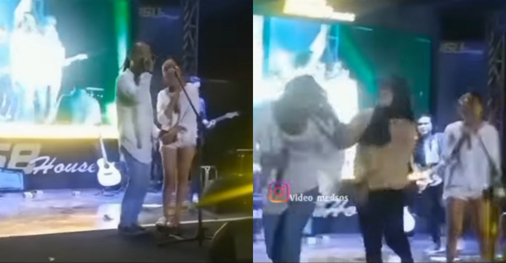Isterinya yang cemburu bertindak naik ke atas pentas lalu menampar suaminya.